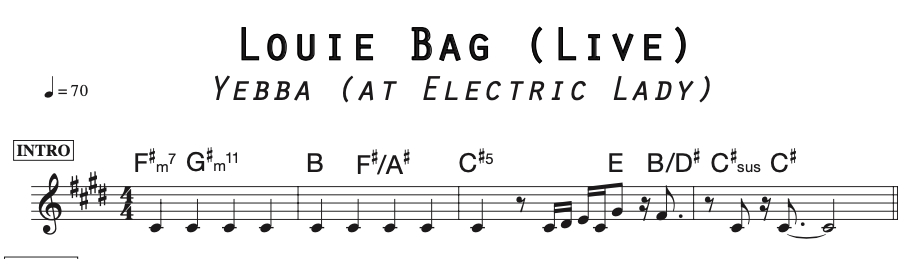 Leadsheet of Louie Bag (Live at Electric Lady) by Yebba.