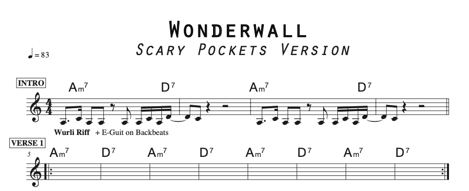 This is the the lead sheet/sheet music of Wonderwall in the version of Scary Pockets.